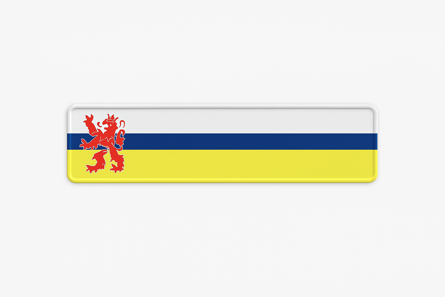 Kentekenplaat met de Limburgse vlag. Te bedrukken in elke gewenste tekst. Maximaal 15 tekens.